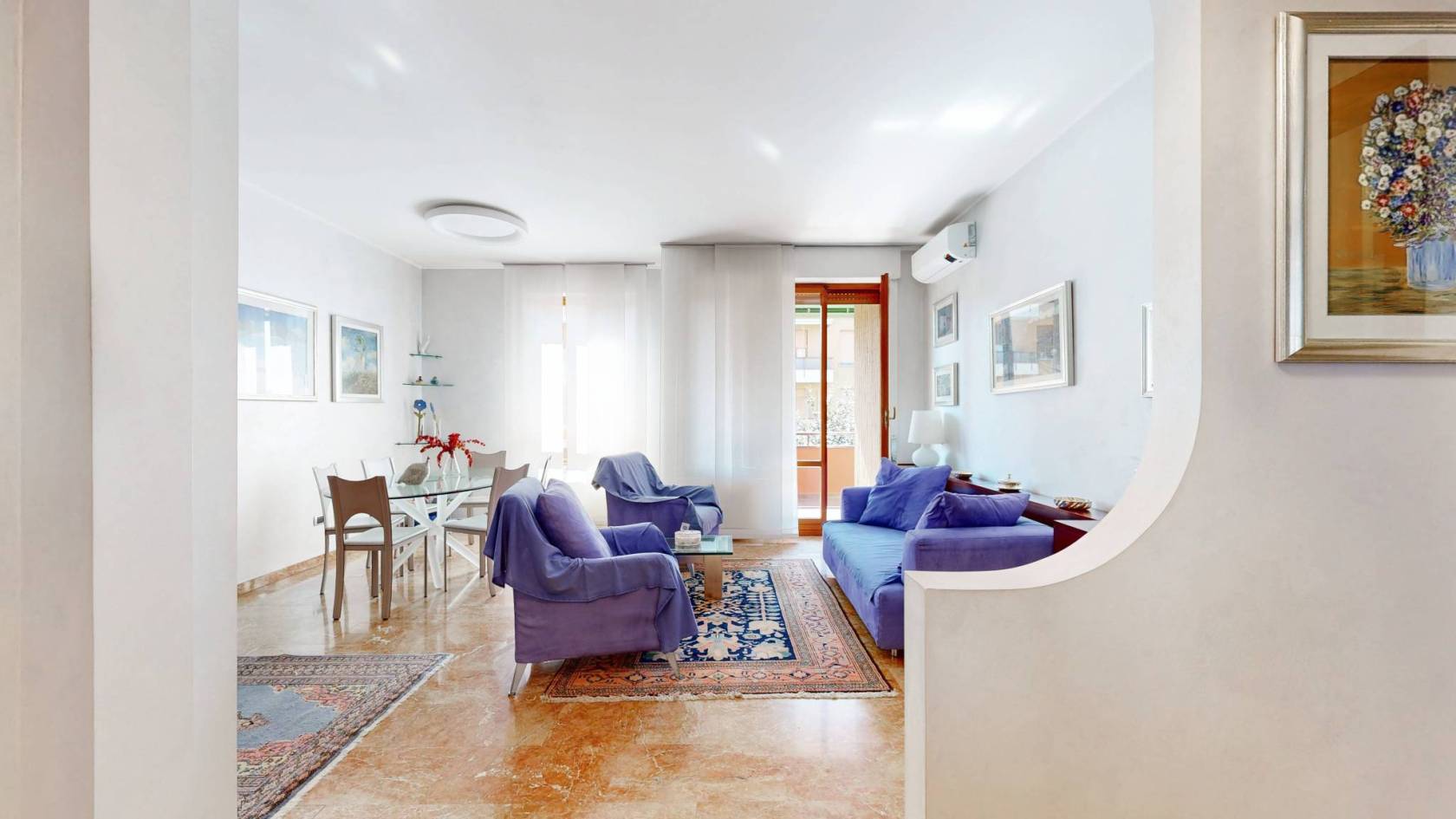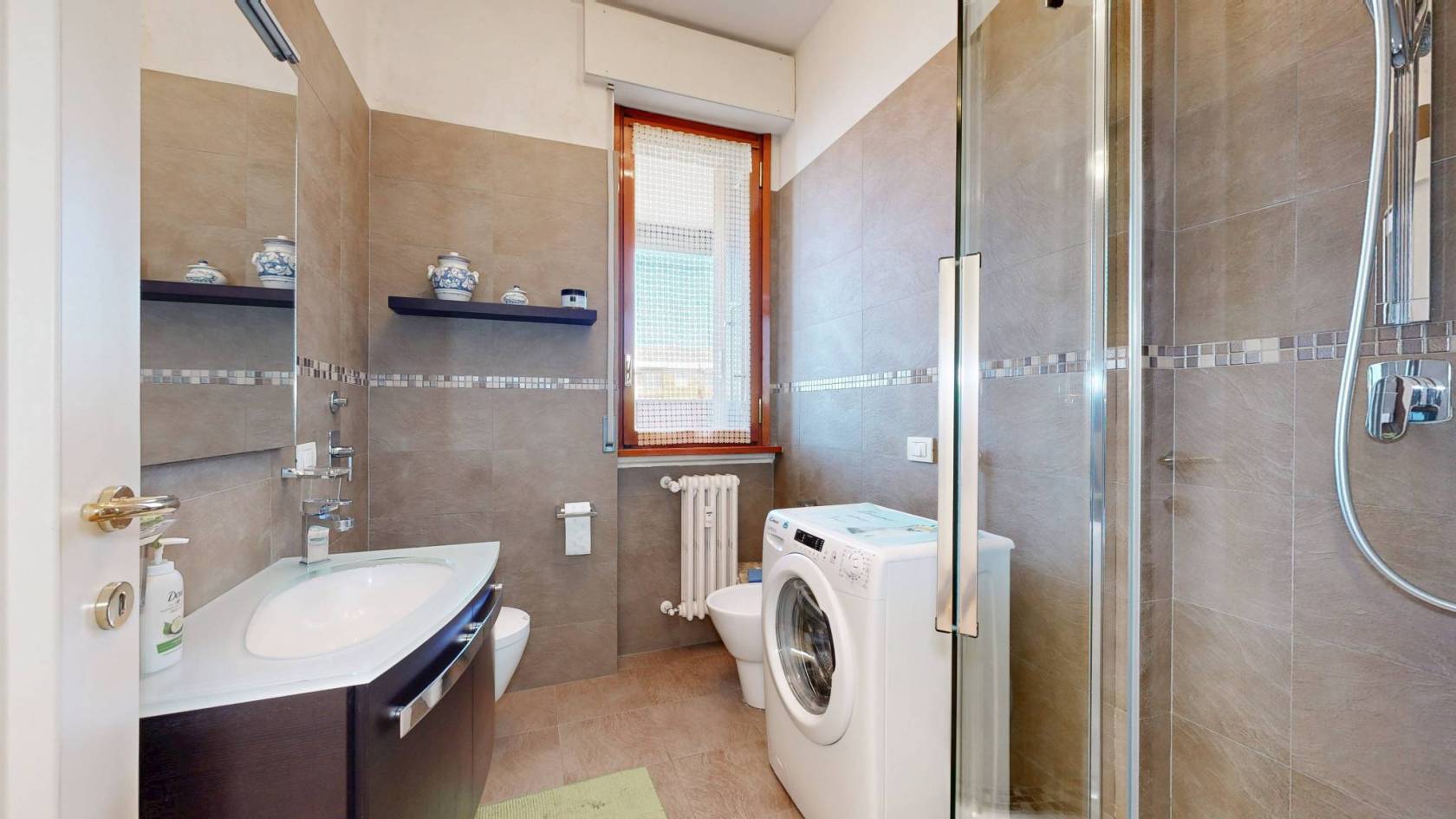 Completa l'unità abitativa un balcone ed un terrazzino, entrambi ideali per apprezzare la vista panoramica. La doppia esposizione assicura una luminosità naturale durante tutto il giorno, mentre l'aria condizionata mantiene un clima perfetto in ogni stagione. Inclusi nel prezzo ci sono anche una cantina e un box auto, rendendo questo appartamento ancora più comodo.