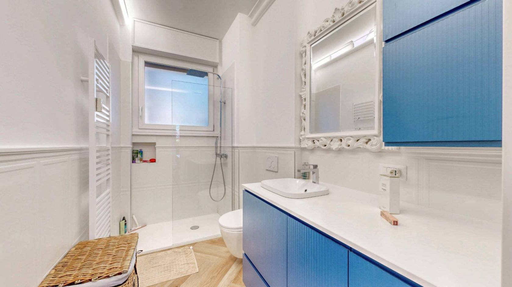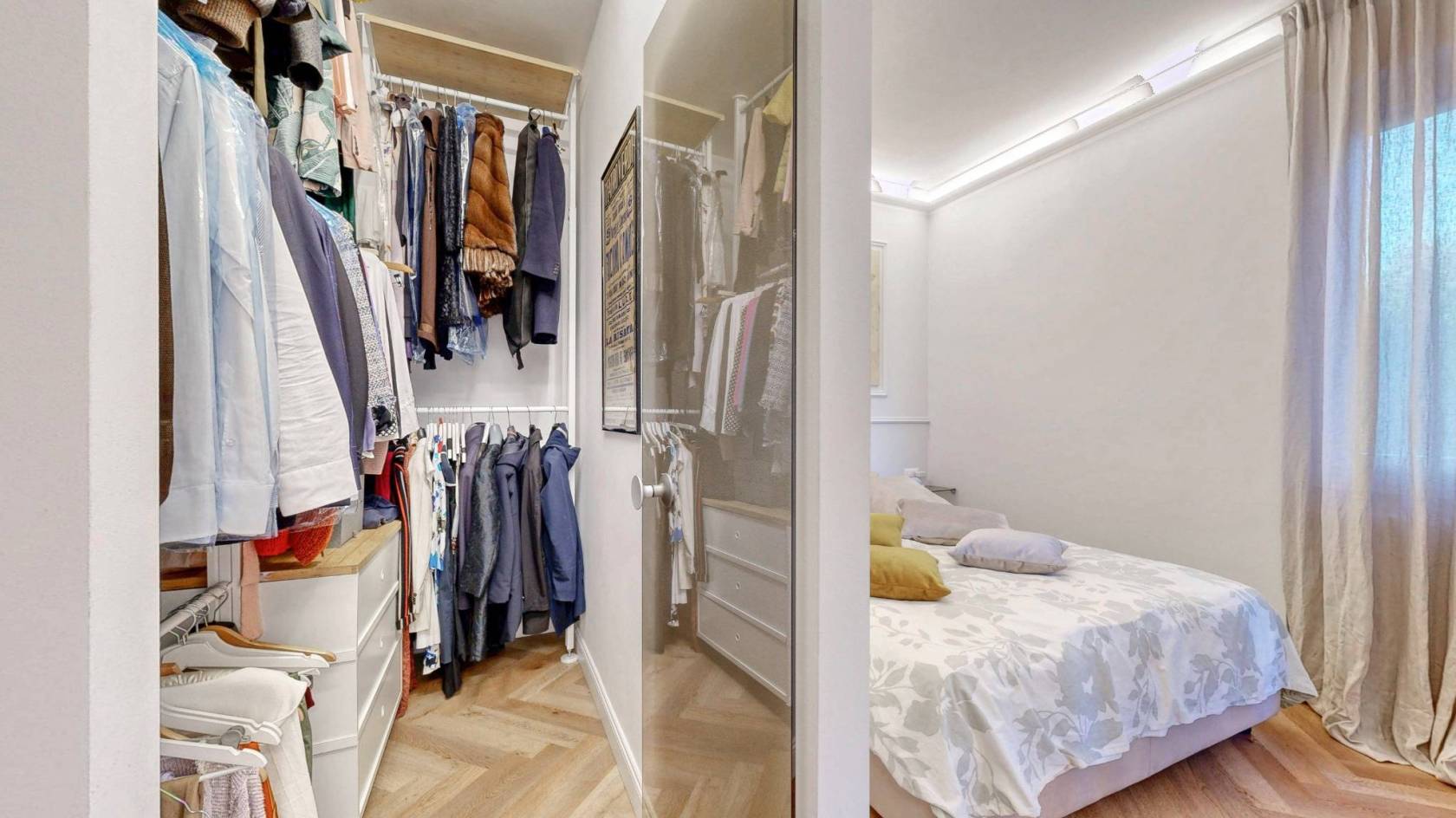 La composizione dell'appartamento include un ingresso accogliente, una cucina abitabile, un ampio soggiorno luminoso, tre camere da letto e doppi servizi, ideali per famiglie o per chi cerca spazio. Inoltre, due balconi offrono la possibilità di godere dell'aria aperta. Non mancano cabine armadio e cantina per soddisfare tutte le esigenze di spazio.