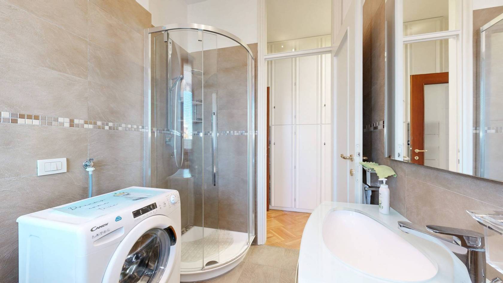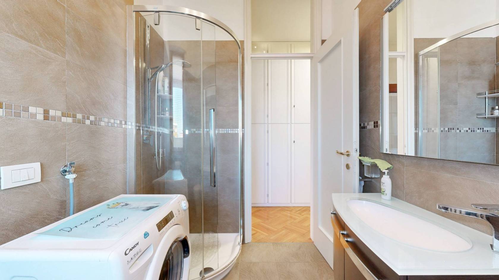 Completa l'unità abitativa un balcone ed un terrazzino, entrambi ideali per apprezzare la vista panoramica. La doppia esposizione assicura una luminosità naturale durante tutto il giorno, mentre l'aria condizionata mantiene un clima perfetto in ogni stagione. Inclusi nel prezzo ci sono anche una cantina e un box auto, rendendo questo appartamento ancora più comodo.