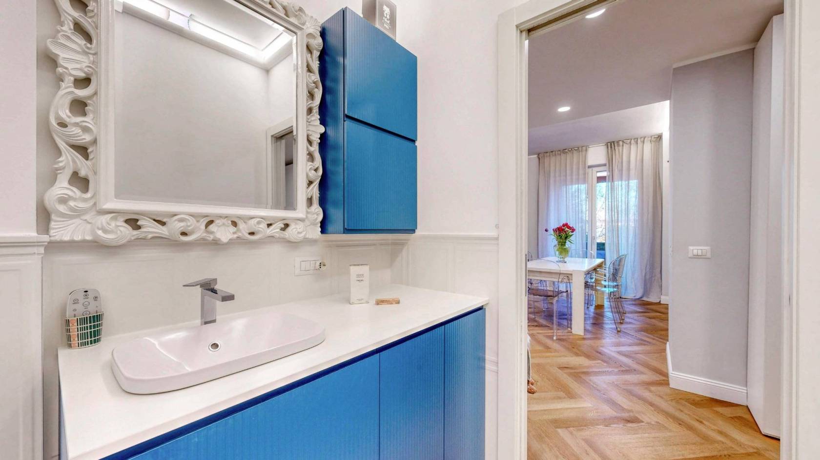 La composizione dell'appartamento include un ingresso accogliente, una cucina abitabile, un ampio soggiorno luminoso, tre camere da letto e doppi servizi, ideali per famiglie o per chi cerca spazio. Inoltre, due balconi offrono la possibilità di godere dell'aria aperta. Non mancano cabine armadio e cantina per soddisfare tutte le esigenze di spazio.